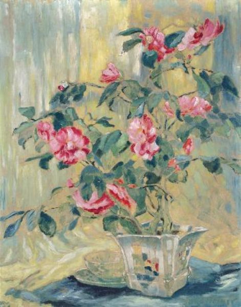 Stilleben mit Kamelie und Tasse