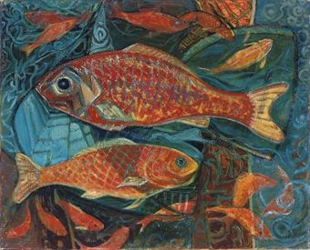 Giant carp; and Six goldfish