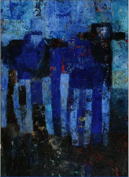 Oil on thick handmade paper laid down on canvas.