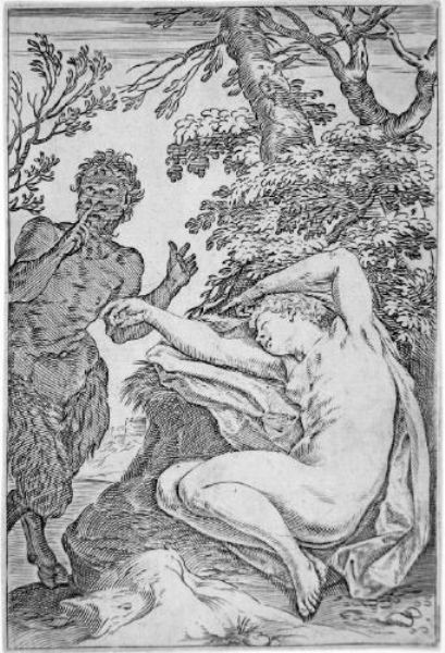 Satyr überrascht eine schlafende Nymphe
