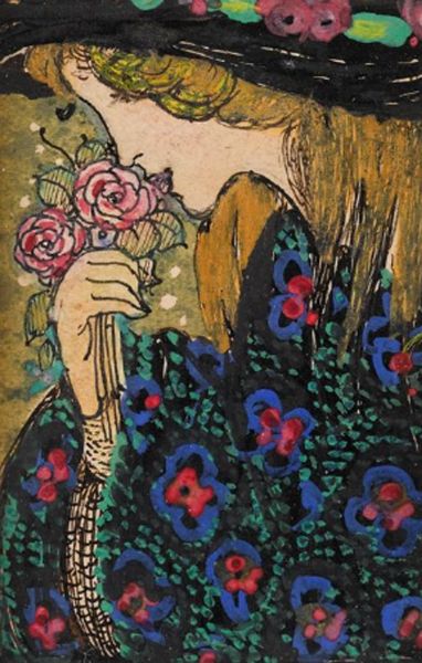 ILLUSTRATION FOR A BOOK – GIRL SMELLING ROSES