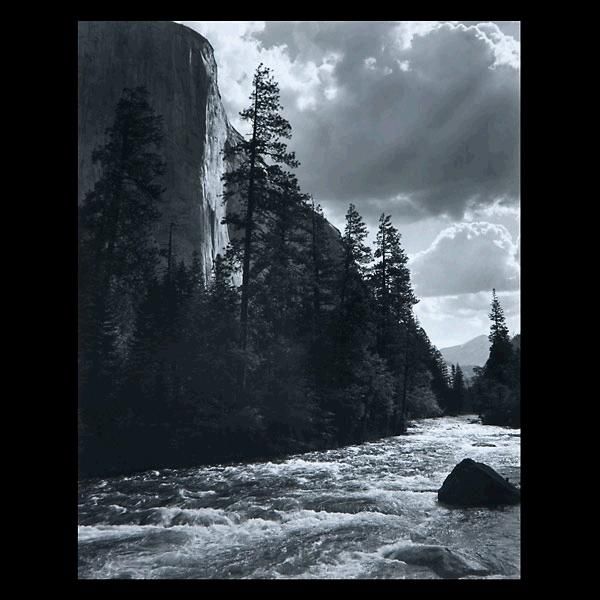 | Printed by Alan Ross under the supervision of Ansel Adams. El Capitan, Merced River, Clouds Yosemite National Park, California | |