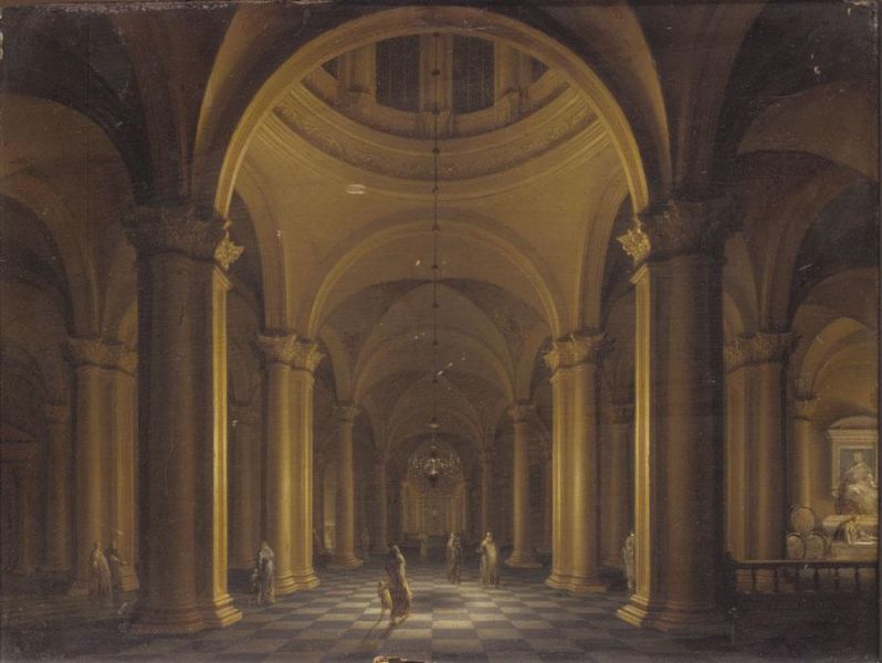 ELEGANT FIGURES IN A NOCTURNAL CHURCH INTERIOR