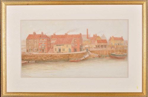 A WEARSIDE FERRY WITH BUILDINGS AND A FACTORY ALONG THE QUAYSIDE
