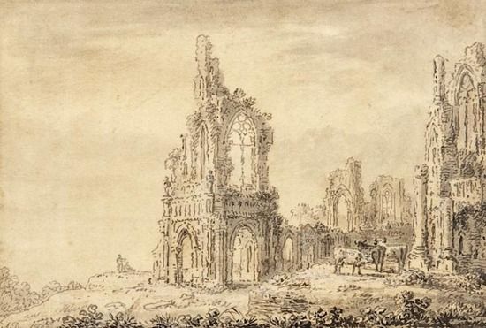 Cattle in ruined abbey