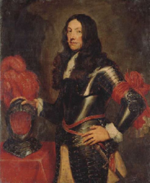 | Portrait of a gentleman in armour, three-quarter-length, with a plumed helmet on a table beside | |