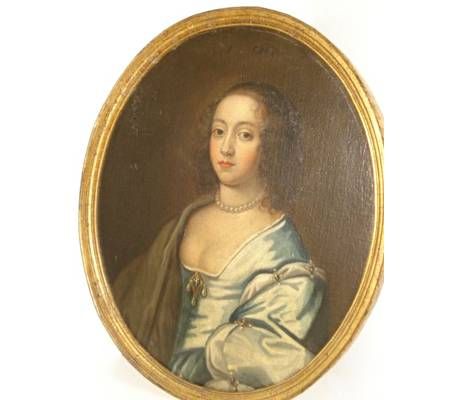 Portrait of a noblewoman, half length, wearing pearls, oval,