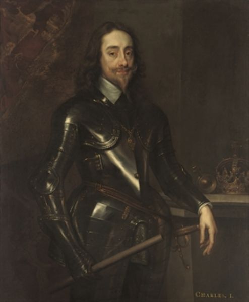 | Portrait of King Charles I, three-quarter-length, in armour, a baton in his right hand, an orb and crown on a plinth to his left | |