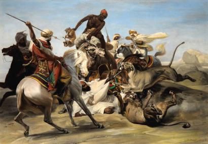 La chasse au lion dans le désert