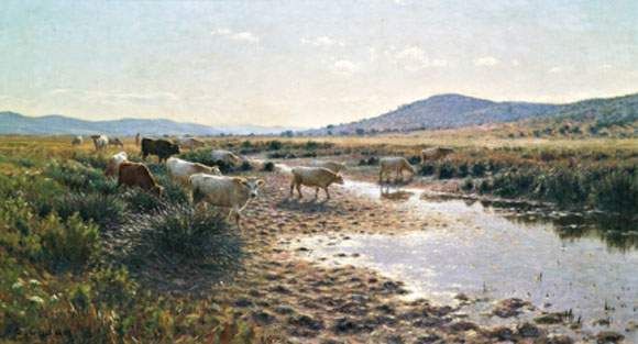 BERGER ET TROUPEAUX AU BORD D'UN OUED