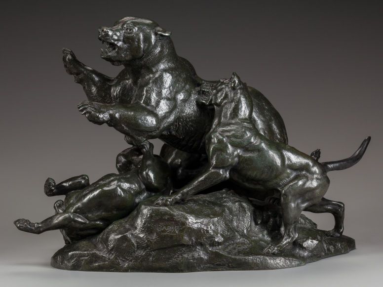 Ours Fuyant Des Chiens (Bear Fleeing from Dogs)