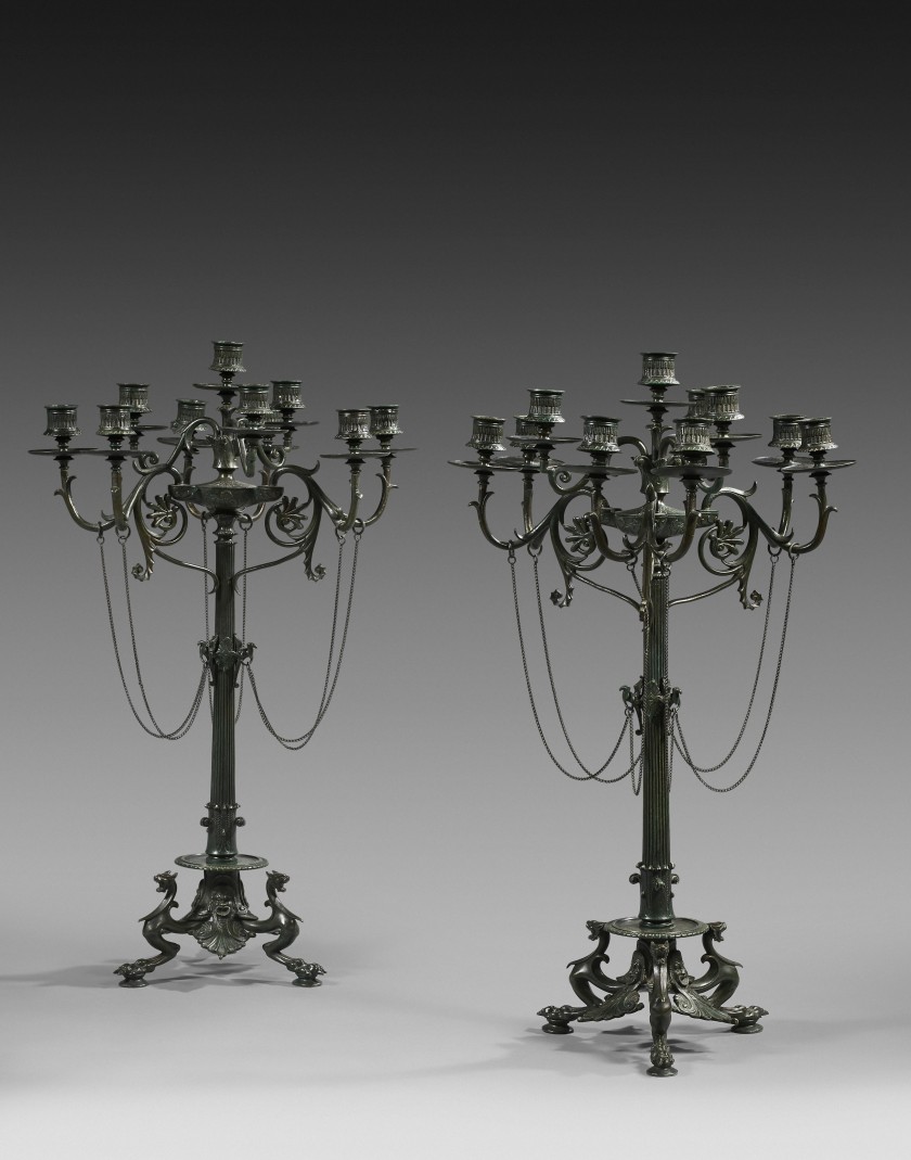 Paire de candélabres grecs à dix lumières