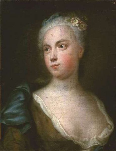 Brustbild einer jungen Frau mit blumengeschmücktem Haar