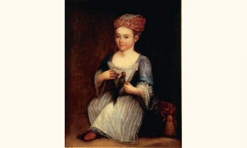 Portrait de fillette tenant un perroquet