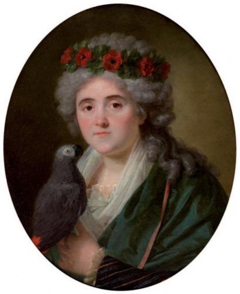 Portrait de femme au perroquet et à la couronne de coquelicot