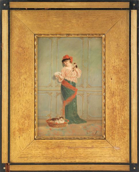 Interior of a woman with kittens