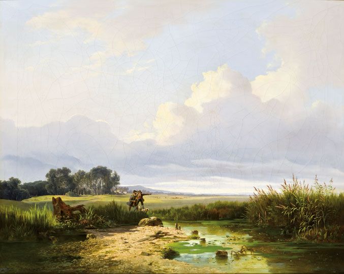 Vízparti részlet vadászokkal, 1846