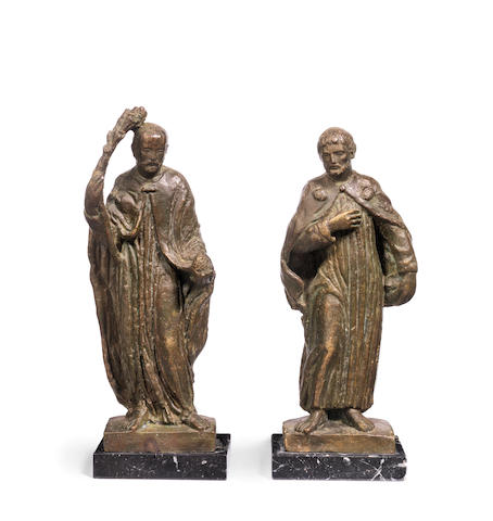 Two green patinated cast bronze models of St. Joseph and St. James