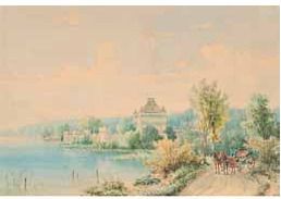 Ansicht vom Starnberger See mit Blick auf Schloss