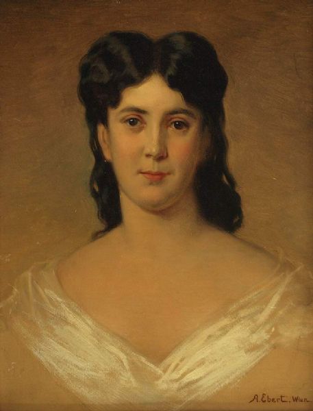Halbbildnis einer Biedermeier-Dame, der Blick dem Betrachter entgegengerichtet