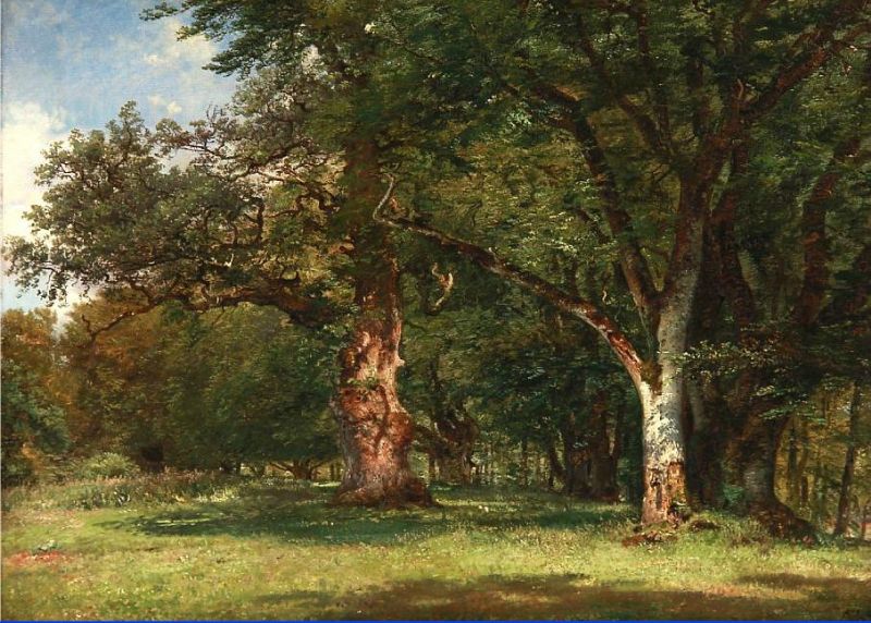 | Summer day in the Deer Garden with oak trees, Denmark | |