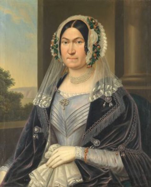 Portrait einer Dame mitSpitzenhaube und prunkvollemKleid