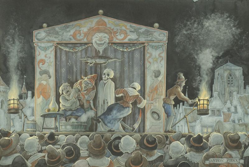 17e Eeuwse kermis bij avond