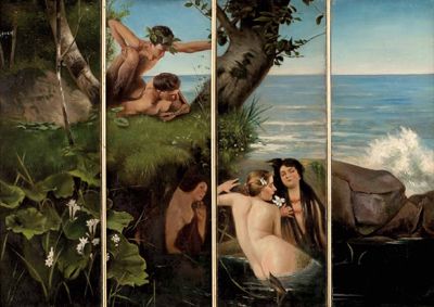 Zwei Faune beobachten Wassernixen