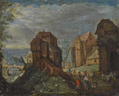 Dorflandschaft mit Figurenstaffage