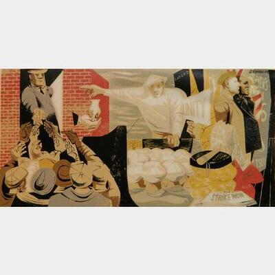 ''San Francisco '34 Waterfront Strike''- silkscreen in colors, 1949, signed, titled and numbered 70/100 in ink, mat burn and toned edges. 11 1/4 x 22 1/4'' | |