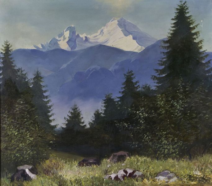 Landschaft bei Berchtesgaden mit Blick auf das Watzmannmassiv.