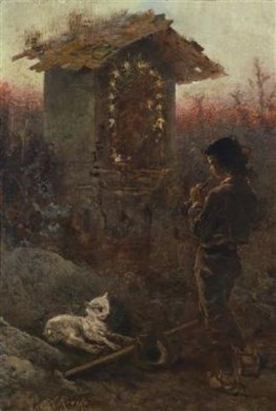 | Italian Shepherd Boy by a Wayside Shrine, Blowing his Shepherd’s Pipe | |