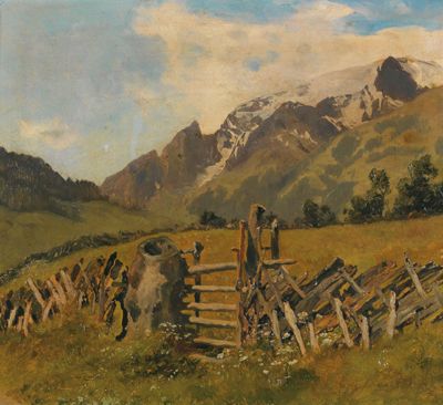 Motiv von der Breitlahner Alm in Tirol, rückseitig beschriftet Naturstudie von Ant. Schrödl