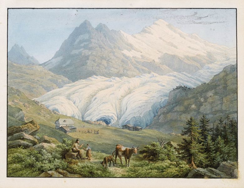 Blick auf den Grindelwaldgletscher mit Fiescherhörnern.