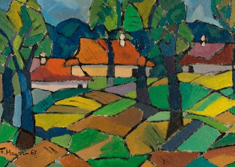PEJZAŻ WIEJSKI Z CHATAMI, 1967