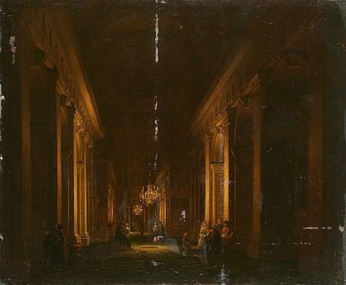 Elegant figures in a classical interior