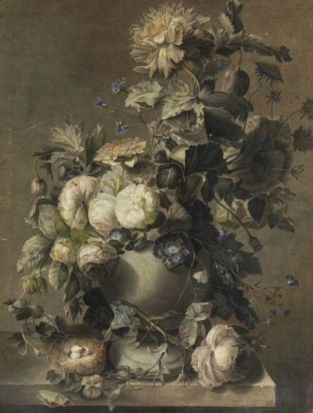 BLUMENSTILLEBEN MIT VOGELNEST