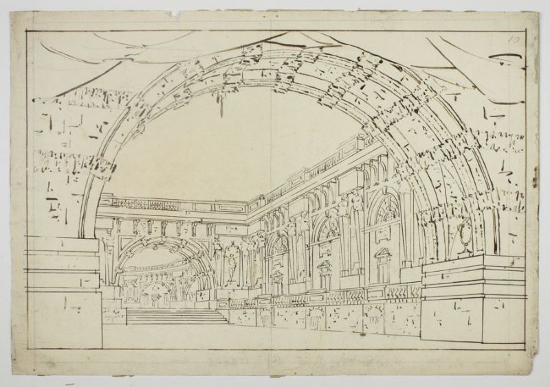 Due studi per scenografie architettoniche di epoca neoclassica.