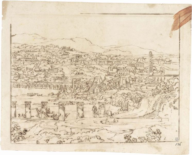 Paesaggio fantastico raffigurante città egizia