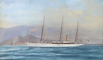 | The Royal Yacht Squadron's steam yacht Aries in Mediterranean waters off Naples | |