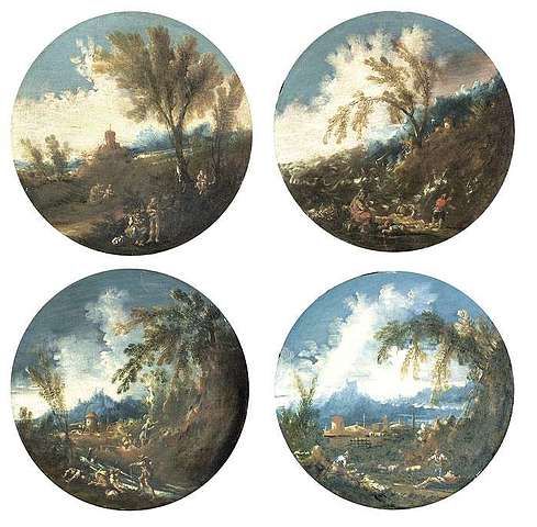 A series of four landscapes (tondos).