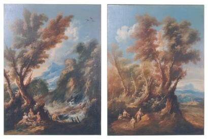 Paysage italien animé de personnages près d'une petite cascade