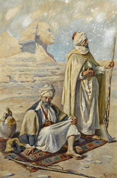 Two tribesmen before the Great Sphinx of Giza