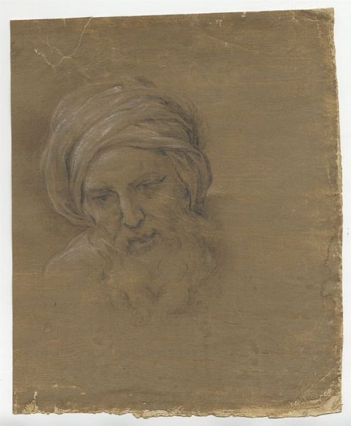 Testa virile barbuta con turbante