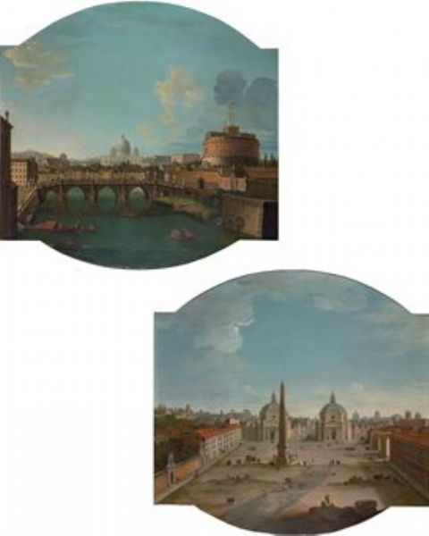 | View of Piazza del Popolo, Rome; and View of the Ponte Sant'Angelo and Castel Sant'Angelo, with Saint Peter's Basilica beyond, R | |