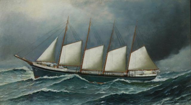 Four Mast Schooner in Heavy Weather