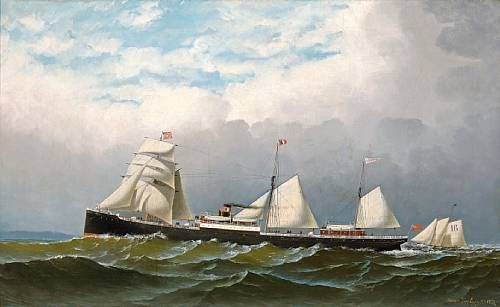 | The British auxiliary steamer Cornwall approaching New York, with the New York pilot schooner Christian Bergh No. 16 off her ste | |