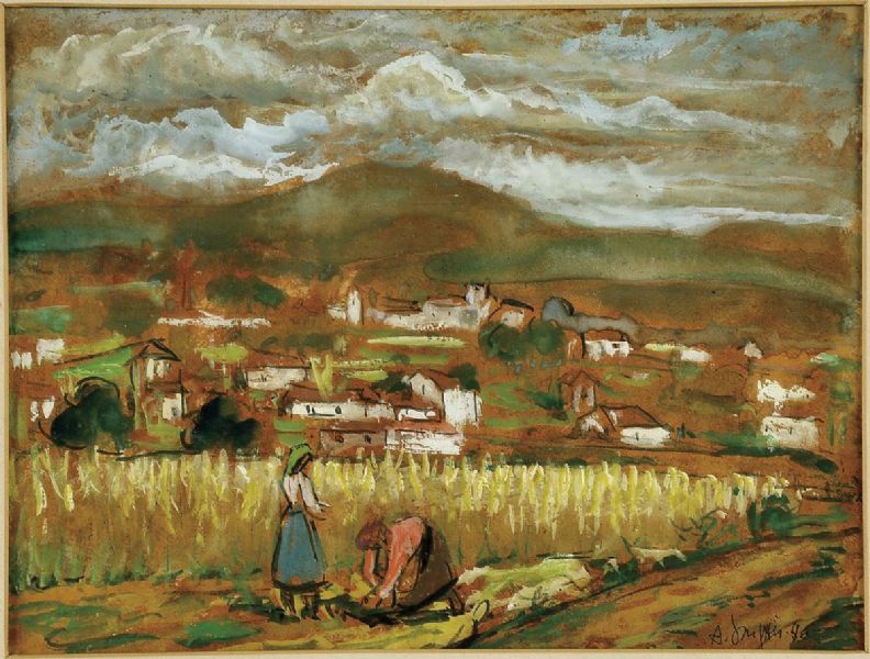 Paisagem com figuras e casario