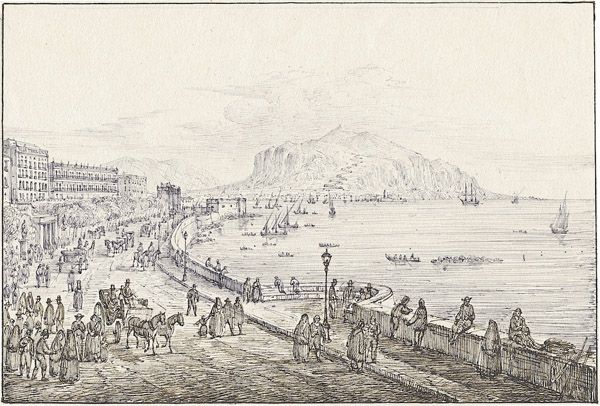 Palermo, Ansicht des Hafens mit dem Monte Pellegrino im Hintergrund.