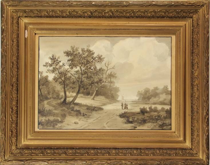 | Drawing brush and brown ink, brown and grey wash, framed | |